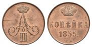 Согласно аукционным продажам, средняя цена данной монеты на 12 декабря 2025 составляет - 12000 рублей для регулярного чекана. Самый дорогой экземпляр, выставлялся 11 февраля 2016 года в Оснабрюке на немецком аукционе Fritz Rudolf Kuenker GmbH, лот номер 3036. На торгах стоимость достигла 1550 евро. Для медных копеек 1855 года с буквами ВМ - это является самой высокой ценой на сегодняшний день.