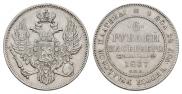 В таблице показаны цены на царскую монету 6 рублей 1837 года СПБ выполненной из платины. Продажи фиксируются на публичных нумизматических аукционах всего мира. Стоимость продажи указана без учета комиссионного вознаграждения аукциона.