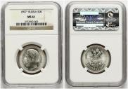 В таблице показаны цены на царскую монету 1 рубль 1907 года (ЭБ) выполненной из серебра. Продажи фиксируются на публичных нумизматических аукционах всего мира. Стоимость продажи указана без учета комиссионного вознаграждения аукциона.