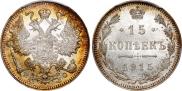 Согласно аукционным продажам, средняя цена данной николаевской монеты на 13 декабря 2025 составляет - 3800 рублей для регулярного чеканаи 81000 рублей для монет отчеканенных по технологии ПРУФ. Самый дорогой экземпляр, выставлялся 12 сентября 2019 года в Москве на российском аукционе MS67, лот номер 315. На торгах стоимость достигла 145000 российских рублей. Для серебряных 15 копеек 1915 года с буквами ВС - это является самой высокой ценой на сегодняшний день.