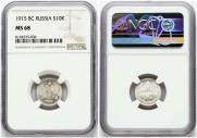 В таблице показаны цены на царскую монету 10 копеек 1915 года ВС выполненной из серебра. Продажи фиксируются на публичных нумизматических аукционах всего мира. Стоимость продажи указана без учета комиссионного вознаграждения аукциона.