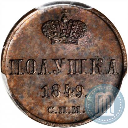 Полушка 1849 года СПМ "Пробная". Медь. Гурт гладкий. Биткин # 953 (R2), Петров - 8 руб., Конрос # 526/11