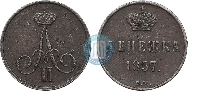 Денежка 1857 года ВМ . Медь. Гурт гладкий. Конрос # 230/27