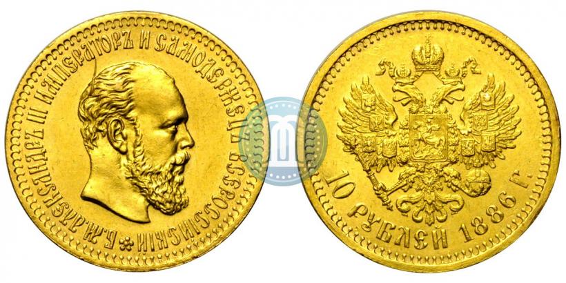 10 рублей 1886 года (АГ) . Золото. Гурт надпись. Биткин # 15 (R), Конрос # 7/1
