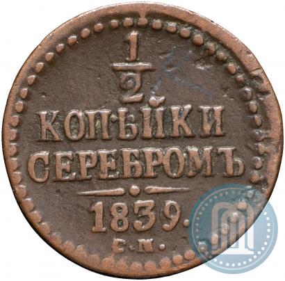 1/2 копейки 1839 года СМ . Медь. Гурт гладкий. Петров - 0,5 руб., Конрос # 229/1