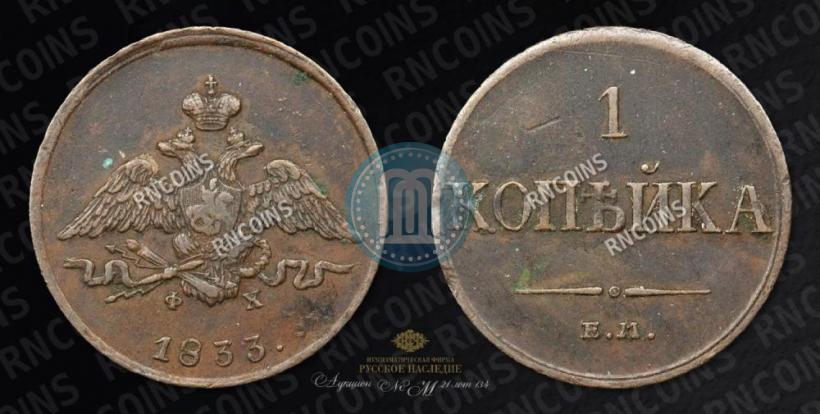 Цена 1 копейка 1833 года ЕМ-ФХ