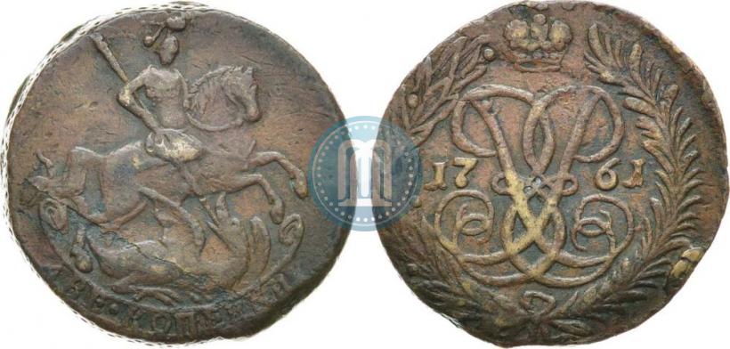 2 копейки 1761 года "Номинал под Св. Георгием". Медь. Гурт сетчатый. Конрос # 191/9