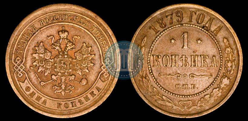 1 копейка 1879 года СПБ . Медь. Гурт рубчатый. Конрос # 218/19