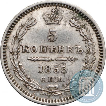 5 копеек 1855 года СПБ-HI . Серебро. Гурт пунктир. Конрос # 169/47