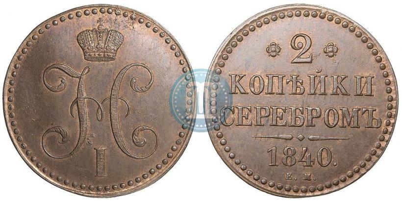 2 копейки 1840 года ЕМ . Новодел. Медь. Гурт гладкий. Биткин # 549 (R2)