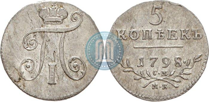 5 kopecks 1798 year СМ-МБ . Silver. Edge cordlike rightwards. Petrov - 0,5 rub., Conros # 166/10