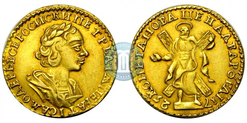 Picture 2 roubles 1725 year  "Portrait in ancient armour"