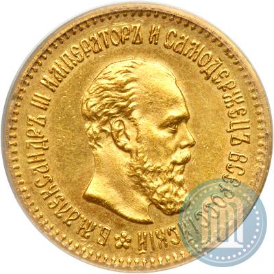 5 roubles 1887 year (АГ) . Portrait with long beard. Gold. Edge inscription. Conros # 19/2