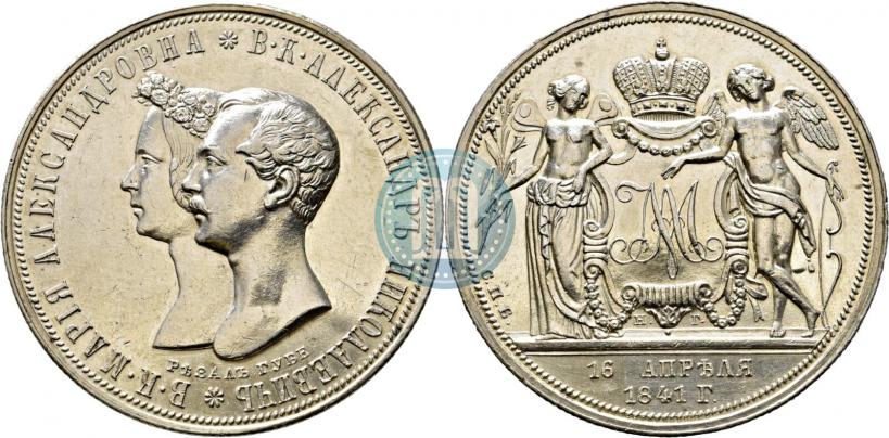Medal 1841 year H. GUBE. FECIT "In the memory of the wedding of the crown prince". Silver. Edge plain. Bitkin # 903 (R1)