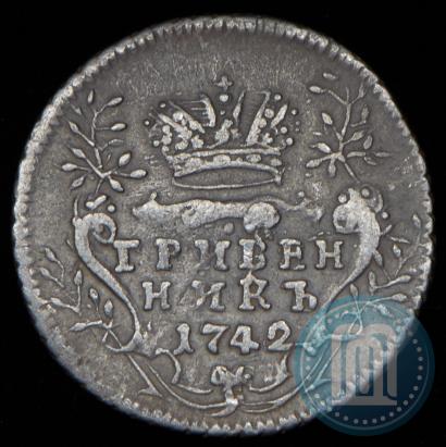 Grivennik 1742 year . Silver. Edge cordlike leftwards. Petrov - 1 rub., Conros # 154/1