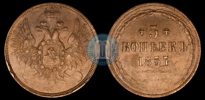 5 kopecks 1857 year ЕМ . Copper. Edge plain. Conros # 184/14