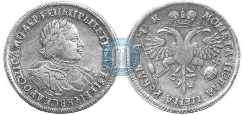 1 rouble 1720 year OK "Portrait in armour". Clasp on cloak. Arabesques on chest. Silver. . Bitkin # 362 (...-R2)